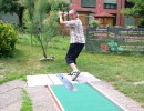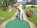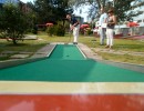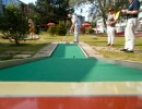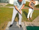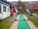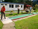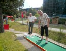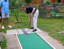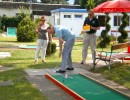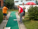 Das Minigolfturnier fand heuer in kleiner aber feiner Runde, statt. Nach Christian’s Erklärungen der Schlagtechnik, Spielregeln und Zählweise ging es los. Gerade das Thema Ausfüllen des Zählformular’s löste bei einigen Verwunderung und Diskussionen aus. Ob das Eckerl oben oder vielleicht doch unten gehört? Wann wird das Feld ausgefüllt? Hat das Auswirkungen auf das Ergebnis, vielleicht sogar mit Pluspunkten belohnt? Bei brütender Hitze wurden die Gruppen eingeteilt und die Bahnen in Angriff genommen. Für jeden der Teilnehmer (außer Christian) gab es eine Bahn, die nicht und nicht zu bewältigen war. Aber mit guter Laune und viel Spaß funktionierte es dann doch irgendwann. Zufällig erfuhr man von Barbara und Richard, dass sie eifrig für das Turnier trainierten. Nur gut, dass es in unserem Club keine Streber gibt 🙂