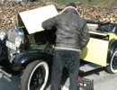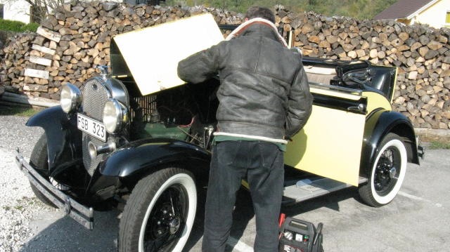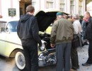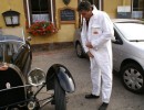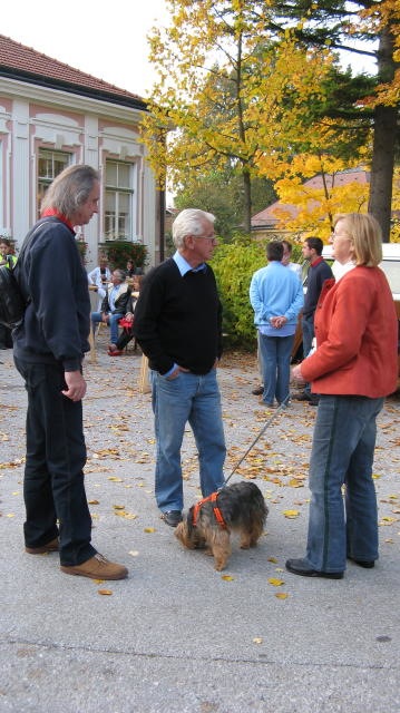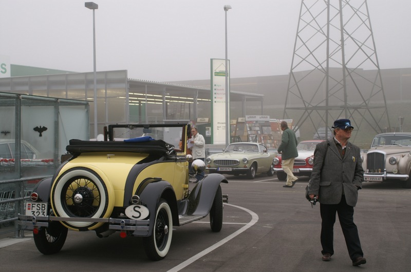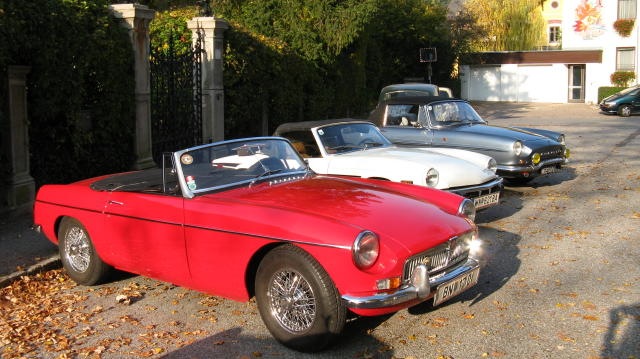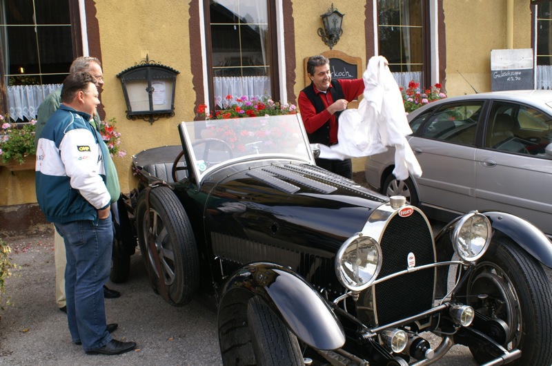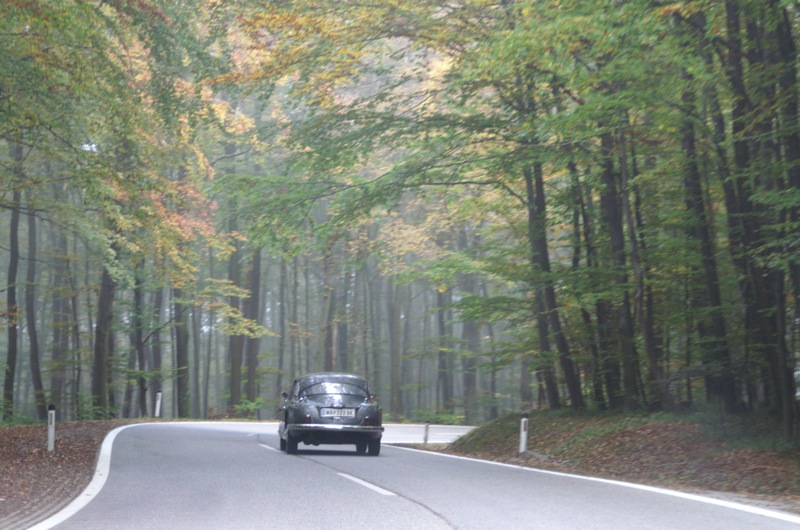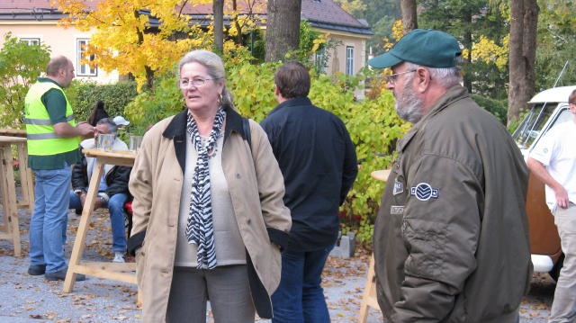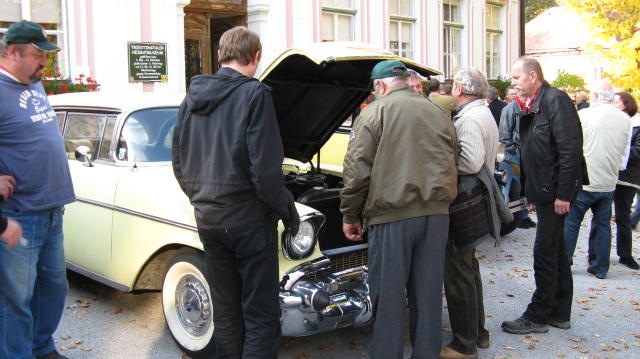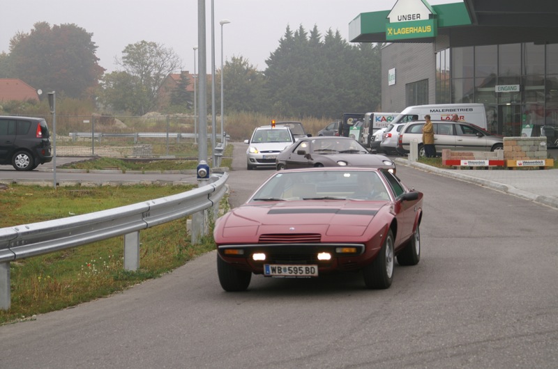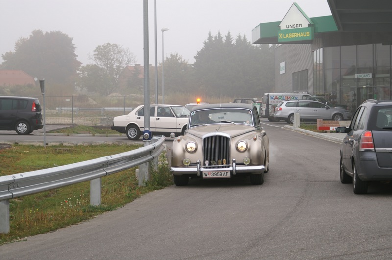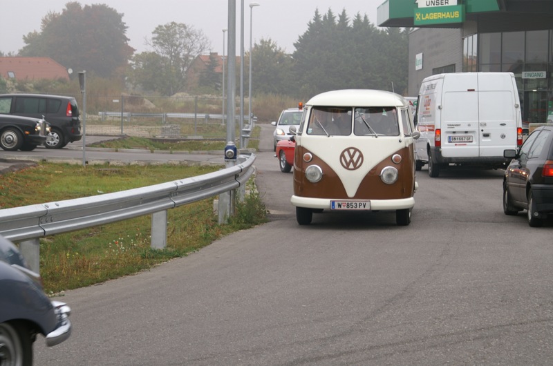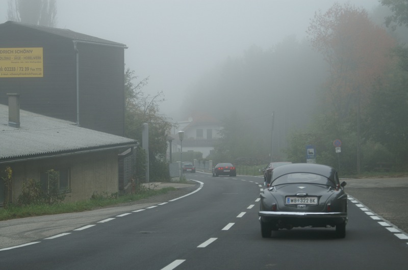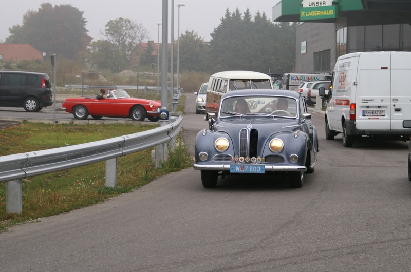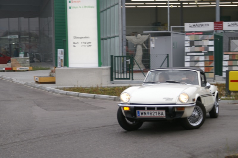 Mit etwas Verspätung weiter über die Klammhöhe, vorbei bei St. Corona am Schöpfl über Klein Mariazell, weiter nach Weißenbach, ins Triestingtaler Museum. Einige der Teilnehmer nutzten das tolle Wetter und beschlossen eine größere Runde als geplant zu fahren. Dass man sich so großmächtig verfahren hatte, spielte jedoch keine Rolle. Es hieß ja „Fahrt durch den Wienerwald“. Der Nebel hatte sich gelichtet und so konnte man das leuchtend bunte Farbenspiel der sich herbstlich färbenden Blätter bewundern. Leider stoppte eine Panne den Konvoi. Bei einem Fahrzeug waren alle Schrauben des Radlagers locker. Unter fachkundiger Beratung vieler Teilnehmer wurde der Schaden behoben und die Fahrt ging ohne weitere Zwischenfälle weiter.