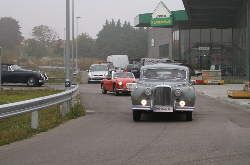 Selbst das perfekte Herbstwetter wurde von den beiden Organisatoren Hannes Strutzenberger und seiner Uschi organisiert. So fuhren wir durch die wunderschöne herbstliche Landschaft, unterbrochen von Nebelschwaden und Sonnenschein. Unsere Route führte uns vom Startort in Kottingbrunn auf der Weinbergstraße ins Rosental nach Sulz im Wienerwald, in Wolfsgraben wartete dann in einem rustikalem Lokal bereits eine Jause auf uns. Über den Hengstsattel nach Klausen–Leopoldsdorf ging es zum Mittagessen.