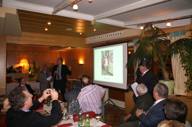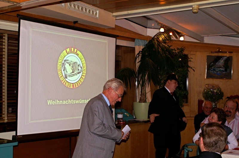Rund 65 COVC’ler fanden auch heuer wieder den Weg in die Panoramaschenke um gemeinsam das Jahr nochmals Revuepassieren zu lassen. Jedes Jahr werden es erfreulicher weise mehr Clubmitglieder bei denen wir uns für ihre Hilfe und Einsatz persönlichen bedanken können. Präsident Wolfgang Nowotny und sein Vize Johann Juster führten heuer wieder mit einer launischen Doppelconference, untermalt mit Bildern, durch das COVC Oldtimerjahr 2008. Unser liebes Mitglied, Dr. Georg Braune, brillierte mit einem kabarettistischen Vortrag über den heurigen Ausflug einiger Mitglieder nach Beaulie.