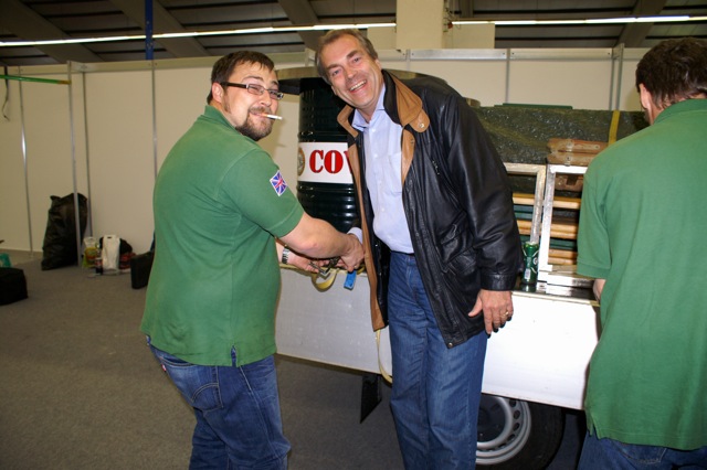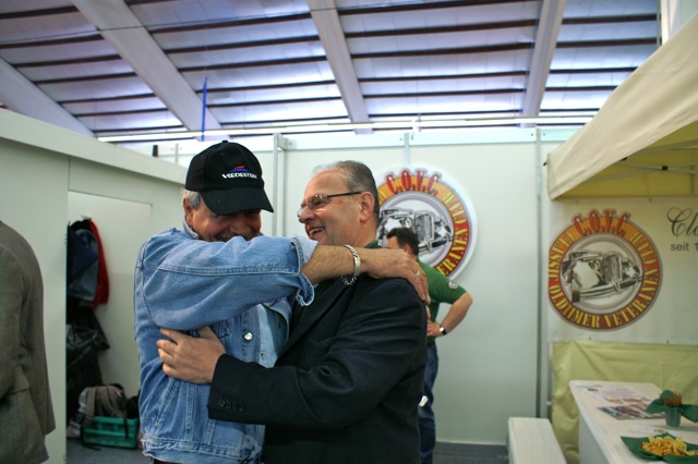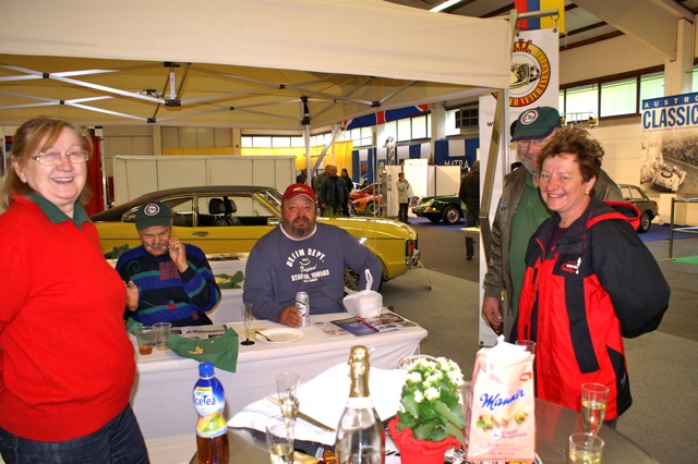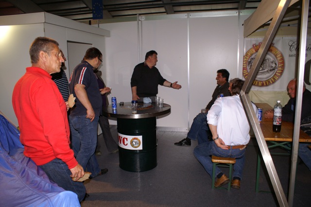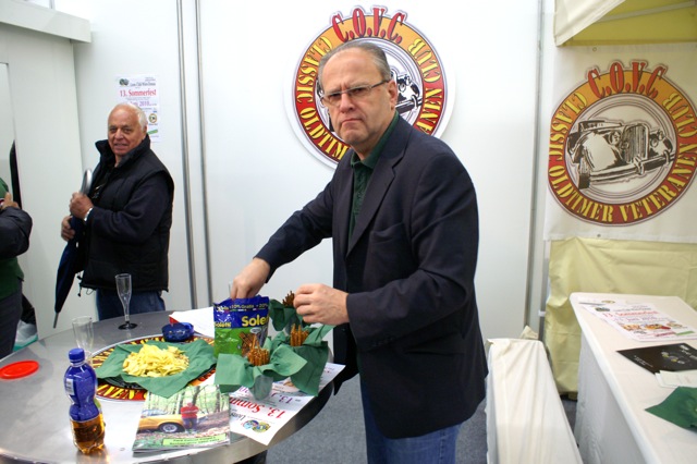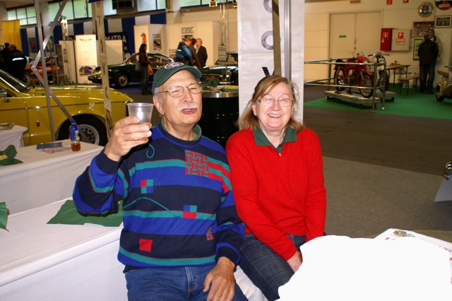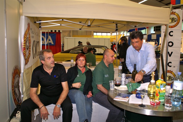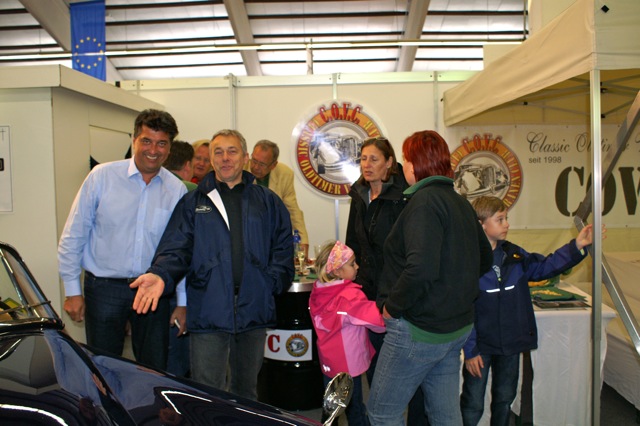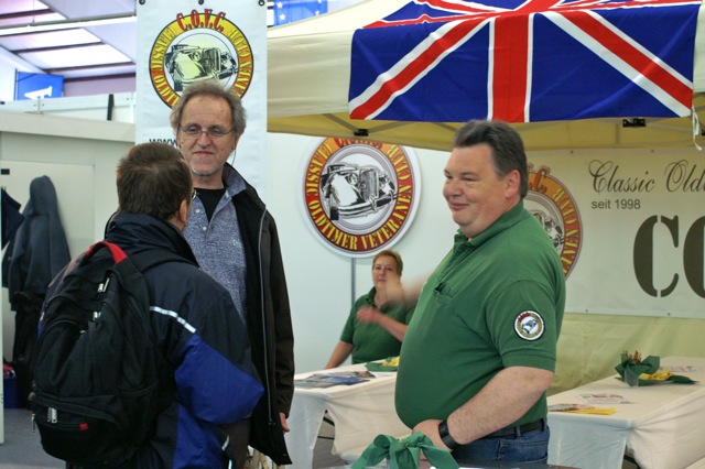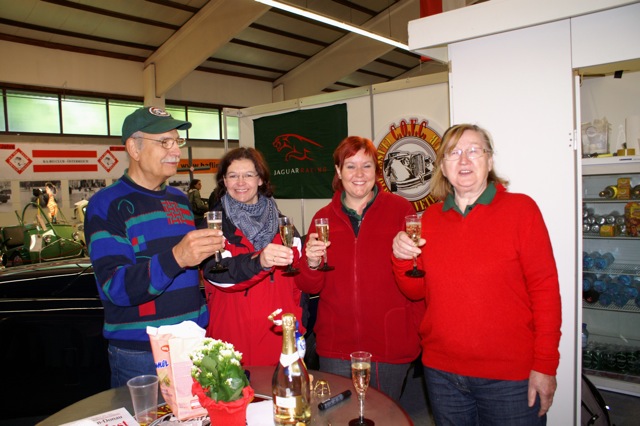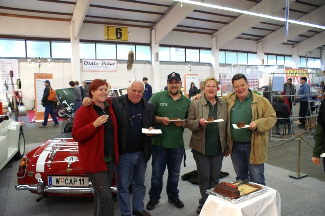 Der befreundete Oldtimerclub MG Owner’s Club feierte auf der Messe sein 25jähriges Bestehen. Der COVC wurde auf Sekt und Torte eingeladen und als Dank dafür wurde der MGOC mit einem Geburtstagsständchen beglückwünscht.