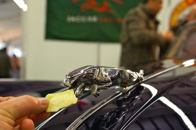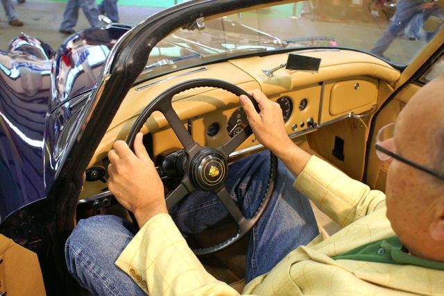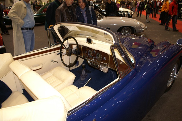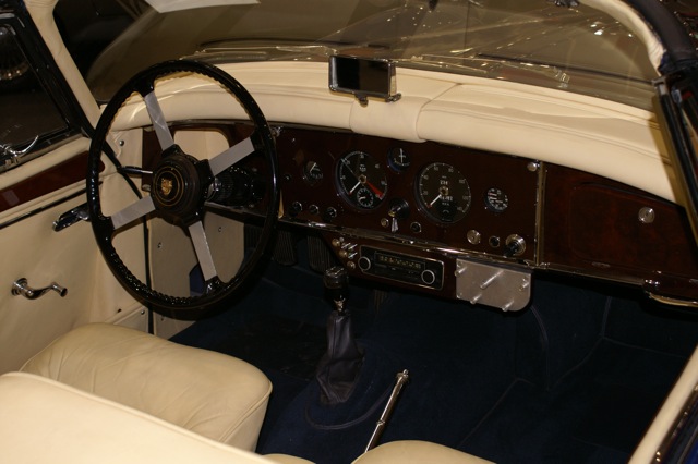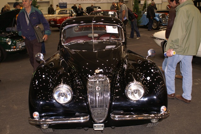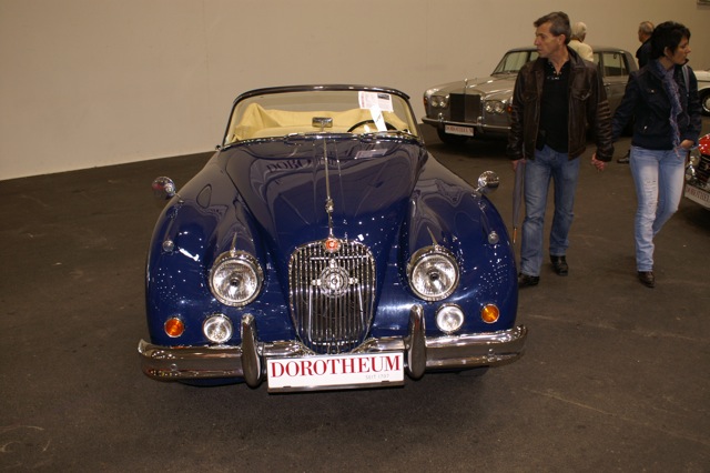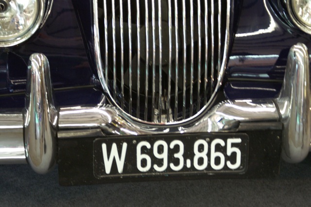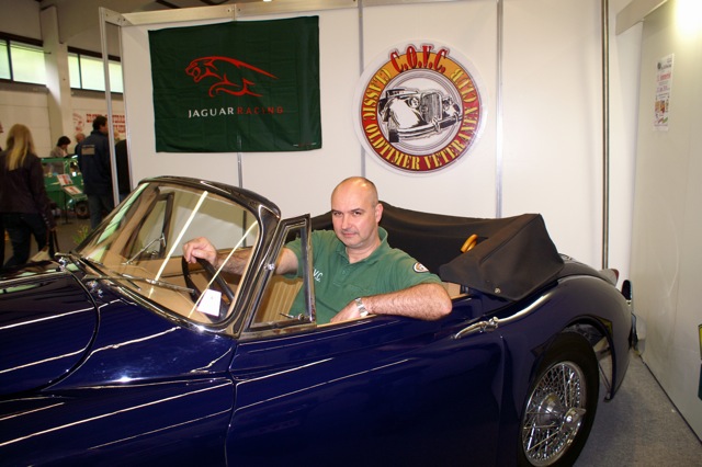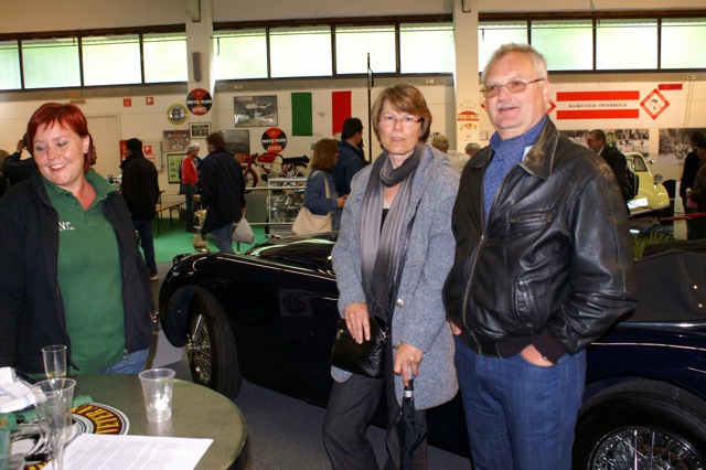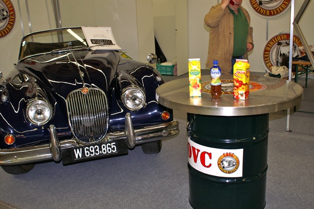 Weiters am Stand der schöne blaue XK 150 aus dem Jahre 1959 von Peter Bellant. Dieser stand als Vertretung für die bereits 20 Jahre zurückliegende Umstellung von den „schwarzen“ auf die nunmehr „weißen“ Nummerntafeln auf unserem Clubstand.