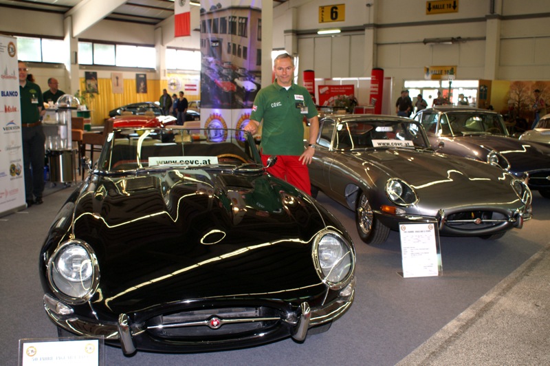 Erstmals auf der Oldtimermesse Tulln feierte der COVC ein Jubiläum im großen Stil. Kein Wunder, denn unser Club kann auf eine stattliche Anzahl dieser Ikonen verweisen. Auf 330 m2 waren neun E-Type, als Vorgänger ein XK 150 DHC, als Nachfolger ein XJS Cabrio und ein XK 8 Coupe, vertreten. Als Gast war auch noch ein E-Type Lightweight auf unserem Stand. Hannes Strutzenberger war voll in seinem Element und organisierte die Kulinarik, sowie die tolle Videowall samt Beleuchtung. Herbert Fischer recherchierte wochenlang in sämtlichen bekannten und unbekannten Medien um uns auf dieser Messe eine Sondergazette zu präsentieren. Ein wirklich gelungener Höhepunkt! Wie bereits erwähnt, befinden sich alle Fahrzeuge im Clubbestand . Einzige Ausnahme war die Leihgabe des (besonders) leichten Lightweight, da ohne Motor und Getriebe. Dies änderte jedoch nichts an der Faszination dieses Autos.