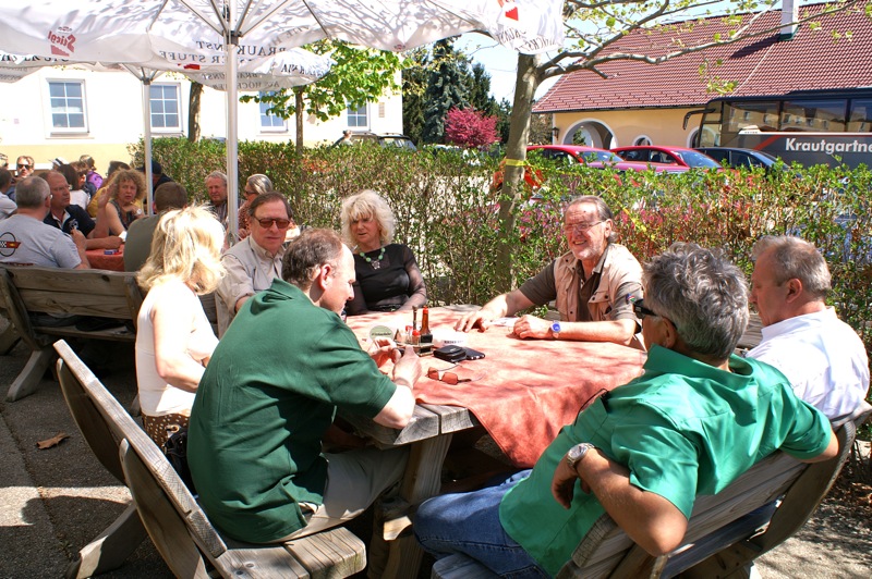Gelungener Saisonbeginn 2012, organisiert von Fam. Past. Der erste Sommertag mit angesagten 30 Grad an diesem 29. April, rund 25 Autos – Herz was willst Du mehr! Einziger Ausfall an diesem wunderschönen Tag durch unseren lieben Herbert Fischer. Sein Bentley war einfach durstig und hat ab dem 2. Treffpunkt gestreikt. Getroffen haben wir uns alle zu einem ausgezeichneten Frühstück,  gesponsert von unserem lieben Organisationsteam, Renate und Hans Past. Dafür recht herzlichen Dank und ein Extraapplaus für die Beiden. So gestärkt, ging es mit kleineren Anlaufschwierigkeiten, an den zweiten Sammelpunkt dem Metroparkplatz nach Langenzersdorf. Im Sonnenschein –  vorbei an herrlich, blühenden Rapsfelder gab es nach ca. 1 Stunde die nächste Pause in Großweikersdorf. Wie konnte es anders sein: nach dieses Rast freuten sich schon alle auf das geplante Mittagessen in Maissau. Dort gesellten sich dann auch noch Elisabeth, Maria Winkler und Michi Braun zu unserer geselligen Runde. Nach einer längeren Mittagspause ging es weiter in die Amethystwelt. Dort teilte sich die Gruppe. Während ein Teil eine Führung besuchte , fröhnte die andere Runde  mit rasten und Eisessen. Auch so kann man eine Mittagspause verlängern. Nach soviel Information bzw. Erholung traten wir am späteren Nachmittag die Heimreise an. Durch das Kamptal vorbei an Langenlois bis Mauerbach.  Unsere bereits kleiner gewordene Gruppe stärkte sich noch zum Abschluss im Gasthof Meierei.