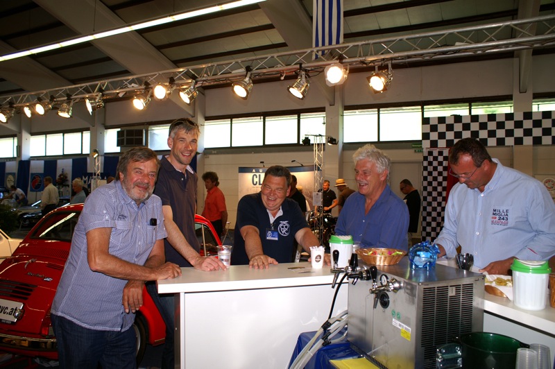 Die drei Autos zeigten, dass sie ihren männlichen Pendants um nichts nachstehen. Unter anderem besuchte uns heuer der bekannte Motorsportjournalist Helmut Zwickl, was uns natürlich sehr gefreut hat. Vielleicht gelingt es uns, ihn an einem unserer Clubabende einzuladen und aus seinem bewegten Leben ein paar Geschichten zu erzählen. Unser Hannes war wieder einmal in seinem Element. Er durfte organisieren, hat einen neuen Messestand samt Konzept entworfen und war wie immer für die kulinarischen Genüsse zuständig. Er und seine Uschi übertrafen sich mal wieder selbst.