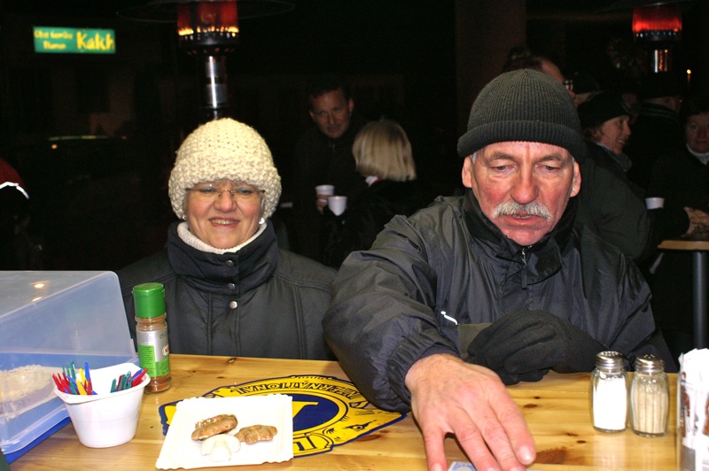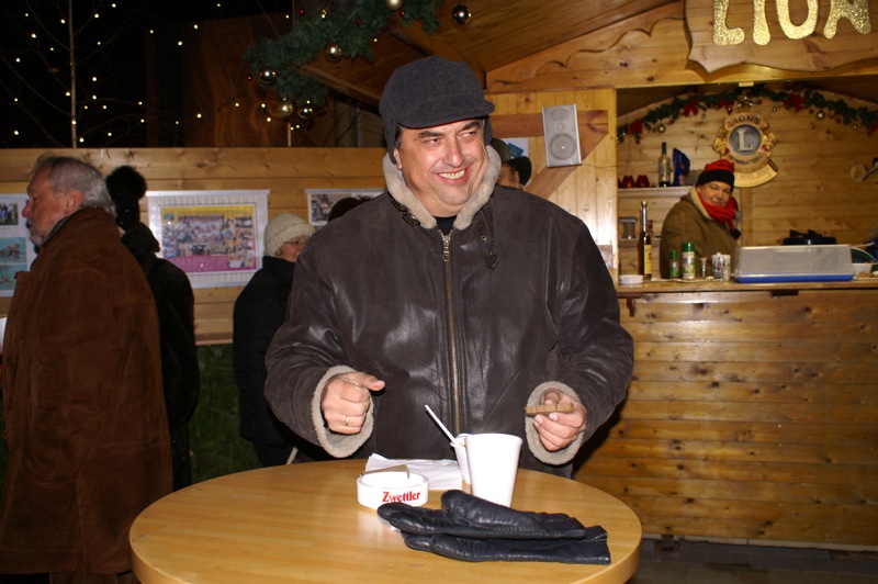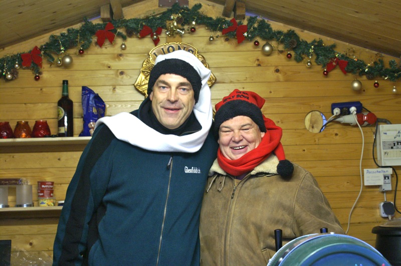 Erstmals, nachdem Wolfgang jetzt auch offizielles Lionsmitglied ist, wurde von ihm höchstpersönlich bei der Gärtnerei Kalch, im Dienst der guten Sache, Punsch ausgeschenkt. Gemeinsam mit Georg, Evi und Brigitte wurden bei eisiger Kälte die Gäste mit heißem Punsch und Glühwein, aber auch mit Chili con carne und Würstel verwöhnt. Es war das das letzte Treffen vieler COVCler im heurigen Jahr. Wie auf den nachfolgenden Bildern ersichtlich waren nicht nur die „Vier von der Tankstelle“ gut aufgelegt. Ein Großteil der Gäste waren der Witterung entsprechend angezogen, nur Peter Wollner zeigte uns was ein richtiger Naturbursche zu bieten hat.