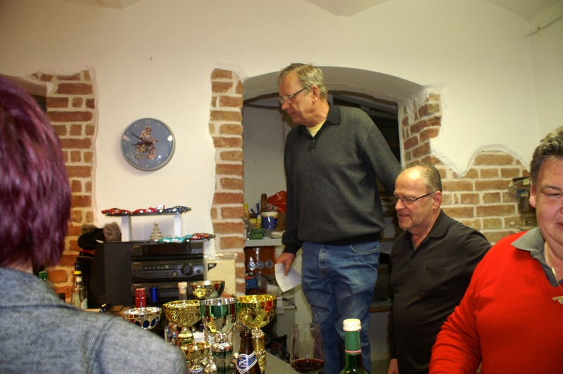 Georg und Hans sorgten für die richtige Verpflegung, der eine mit Rotwein und der andere mit rasch herbei geholten Wurstsemmeln für die Mitspieler. Dafür herzlichen Dank.