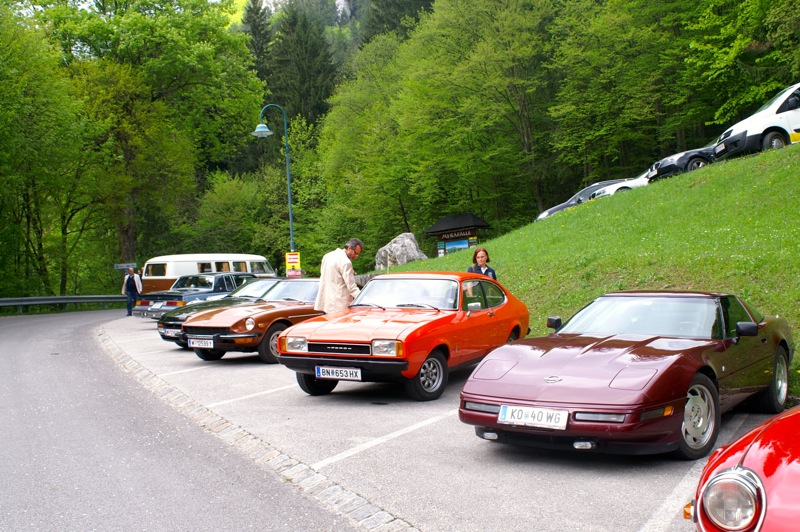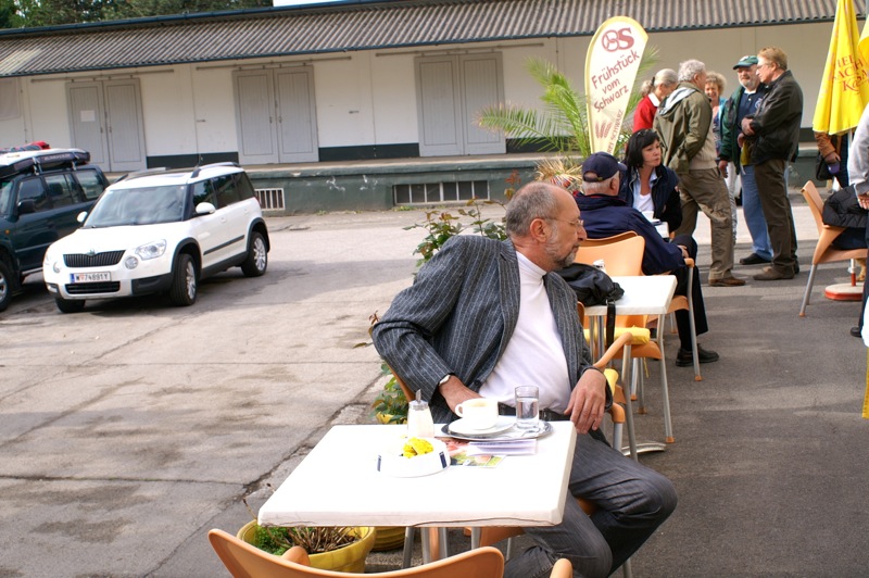 Mit ca. 25 Fahrzeugen sind wir nach einer kurzen Begrüßung fast pünktlich um 9.00 Uhr bei der Bäckerei Schwarz abgefahren. Über den 23. Bezirk und Breitenfurt, durch Wälder und kurvenreichen Strassen sind wir gegen 10.15 Uhr bei unsere 1. Station, den Kirchenwirt in Kleinmariazell gelandet.