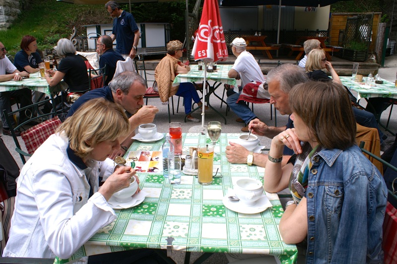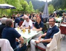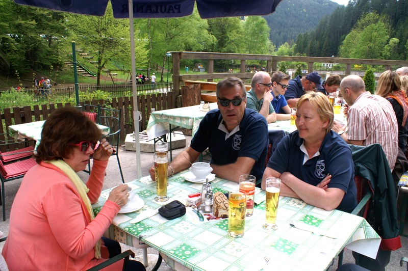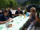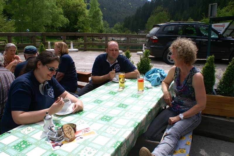 Im Garten der Myrastubn ließen wir uns dann noch das Mittagessen gut schmecken. Einige Unerschrockene nutzten die Möglichkeit einen Teil des Steiges zu den Myrafällen zu begehen.