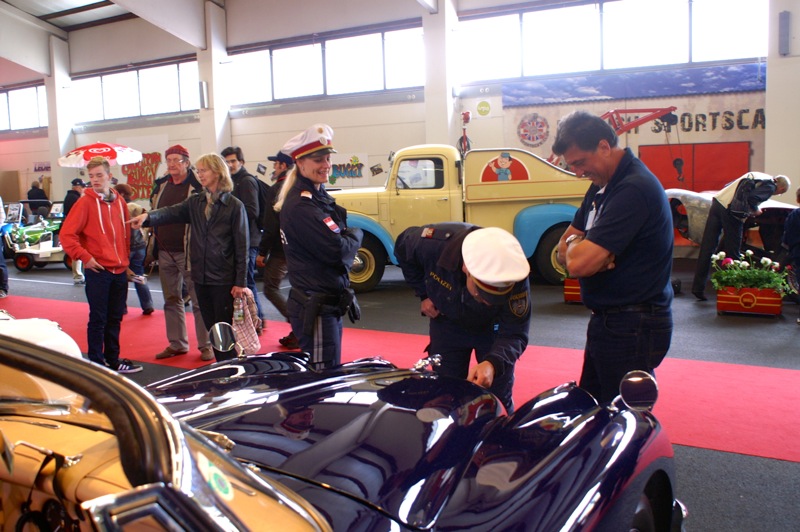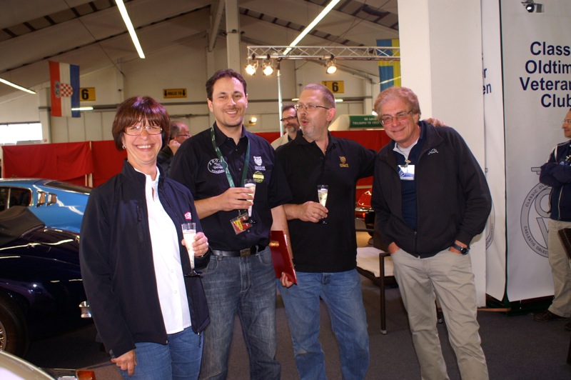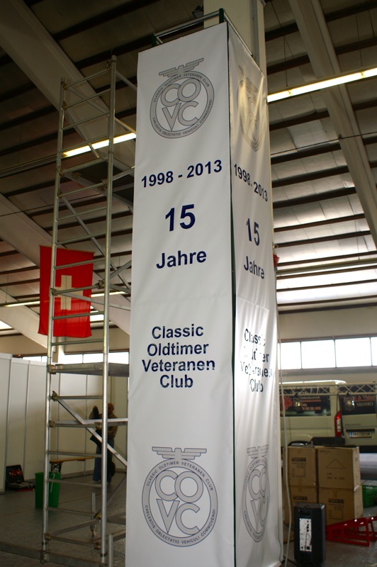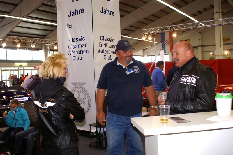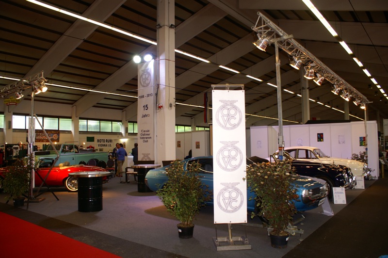 Alle Clubmitglieder und deren Begleitung wurde beim Besuch des Standes das Eintrittsgeld rückerstattet. Einige sahen unser verhungertes Spendenschweinderl und fütterten es mit diesem Geld. Danke dafür. Dann wurde u.a. auch mit einem (oder mehrere) Glas Sekt auf den Geburtstag des COVC angestossen. Die Wände waren mit Fotos der Gründungsmitglieder geschmückt. Zusätzlich gab es noch Deckblätter der Oldtimergazette aus den Jahren 2001 und 2002. Mitglieder die schon länger bei Club sind, werden sich daran sicher erinnern.