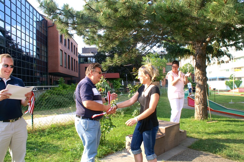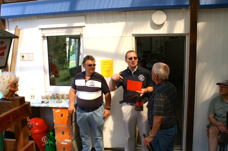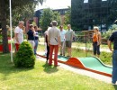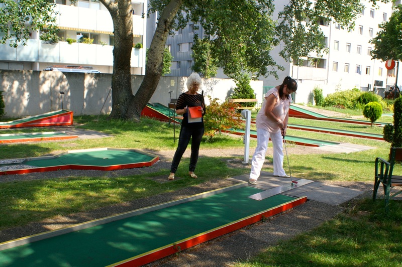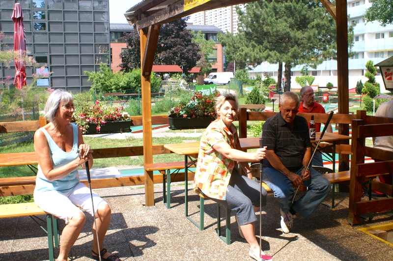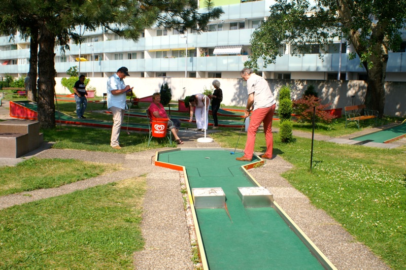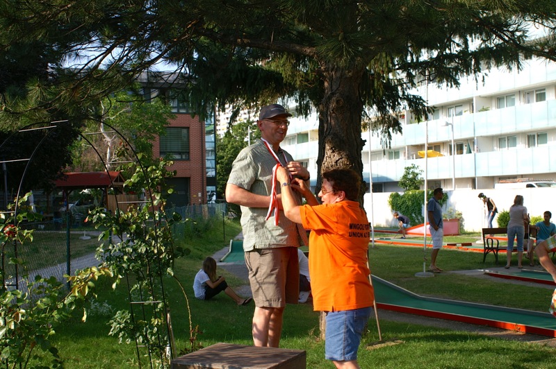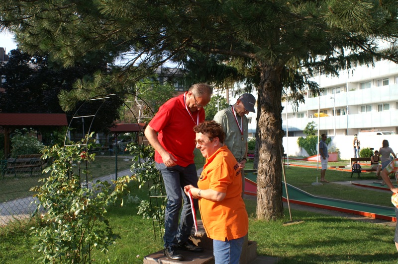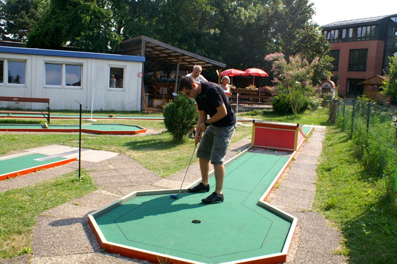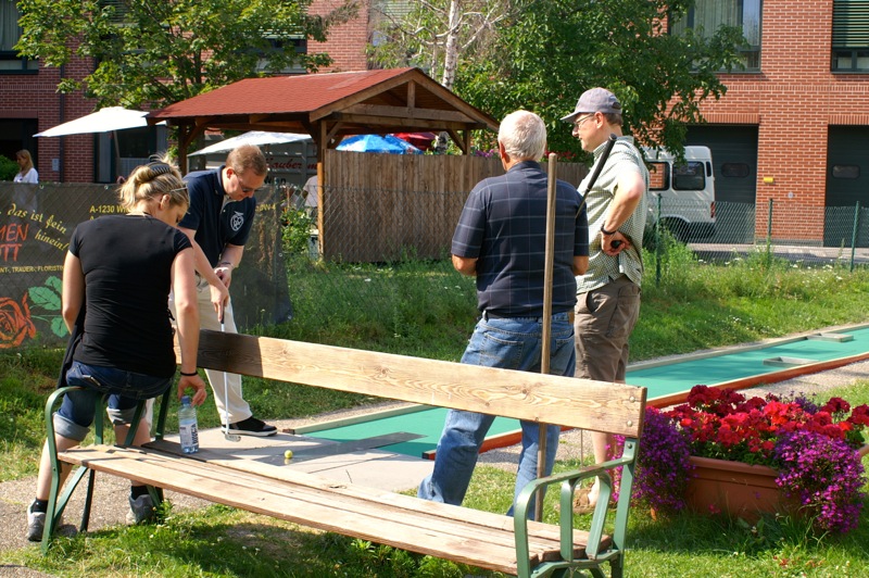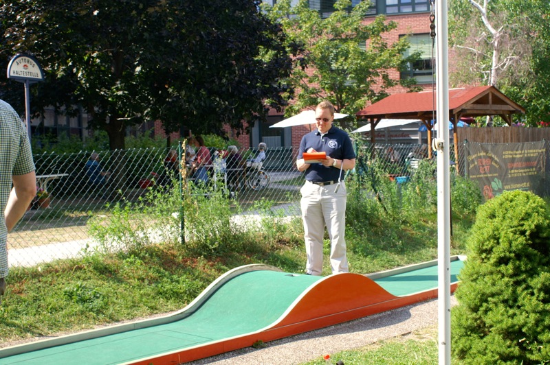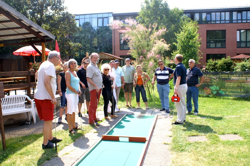 Ein sommerlicher Nachmittag in einer lustigen Runde. 15 Personen, Mitglieder mit Familie und Freunden, trafen sich bei der Minigolfanlage MSC Union Alt Erlaa. zu einem gemütlichen Wettstreit mit einem kleinen, weißen Ball. Christian gibt anscheinend die Hoffnung nicht auf, dass wir alle einmal die benötigten Schläge für die Bahnen reduzieren. Daher gab es auch heuer wieder die bereits obligatorische Spielerklärung gespickt mit Tipps für die richtigen Schläge.