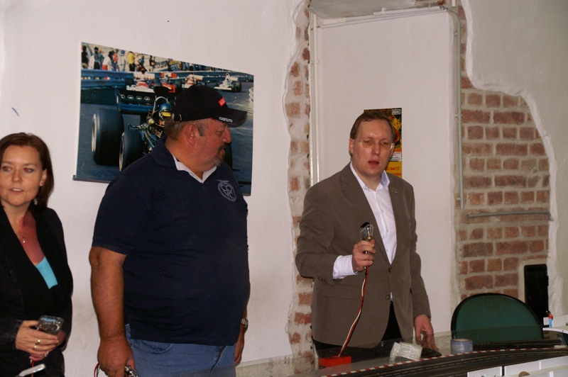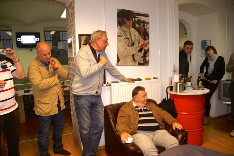 Wie immer erfolgte die Aufteilung der Teilnehmer in drei Gruppen – und schon ging es los. Vor Beginn der ersten Rennen, war allerdings bei einigen noch etwas Stärkung angesagt. Eines war heuer allerdings anders. Nämlich die Taktik des Organisatoren Gerhard. Er versucht die Mitstreiter „müde“ zu machen, in dem er nach der 1. Durchlaufrunde aufgrund eines Computerfehlers alle nochmals starten ließ. Doch bei Walter und Robert half das alles nichts. Die beiden lieferten sich ein Kopf an Kopf-Rennen um den Sieg. Zwei Runden vor Schluss lag Walter noch etliche Sekunden hinter Robert. Aber mit gewaltigen Aufholrunden in den nächsten zwei Rennen gelang Walter tatsächlich noch der Sieg mit einem Vorsprung von 23 sec und 2 Runden. Gratulation an Walter, Robert und Christian. Bei den Damen freuten sich Gabi vor Annemarie und Susi. Der Abschluss bildete dann auch noch eine Rede der „gewichtigsten“ Mitglieder des Vorstandes.
