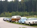 Gelungenes Saisonende an diesem kühlen Samstag, diesmal organisiert von Karin und Harald Rettich. Kurzzeitige Panik überkam Harald, nachdem sich 38 Fahrzeuge angemeldet hatten. Es kam aber so wie immer, kurzfristige Absagen und schließlich starteten wir mit rund 32 Autos. Treffpunkt war in der Kurvenbar in Leobendorf. Überrascht wurden wir von Fam. Rettich mit einem „Jausensackerl“, das jedes Teilnehmerpaar in die Hand gedrückt bekam. Schließlich fuhren wir ja in das Waldviertel und wer weiß, wann wir da was zum Essen bekommen, Nachdem alle pünktlich waren, konnte sich der Konvoi um 9.00 Uhr in Bewegung setzen. Das Loisium wurde aus organisatorischen Gründen links liegen gelassen und so war unsere 1. Pause im Schloss Haindorf bei Langenlois. Nach einer weiteren Stunde Fahrzeit durch die herbstlich Landschaft, ging es Gottseidank zum Mittagessen ins Gasthaus Gamerith, Mottingeramt. Nach einem ausgezeichnetem Mittagmahl heißt es natürlich: auf zur Jause. Eine Stunde verdauen war angesagt und schon waren wir im „Brandlhof“ bei Radlbrunn gelandet. Dort eingetroffen gab es vor dem Kaffee aber noch eine kleine Führung zum Thema Dorferneuerung. Abschluss war dann wie immer, wie kann es anders sein 🙂 bei einem Heurigen in Höbersdorf.