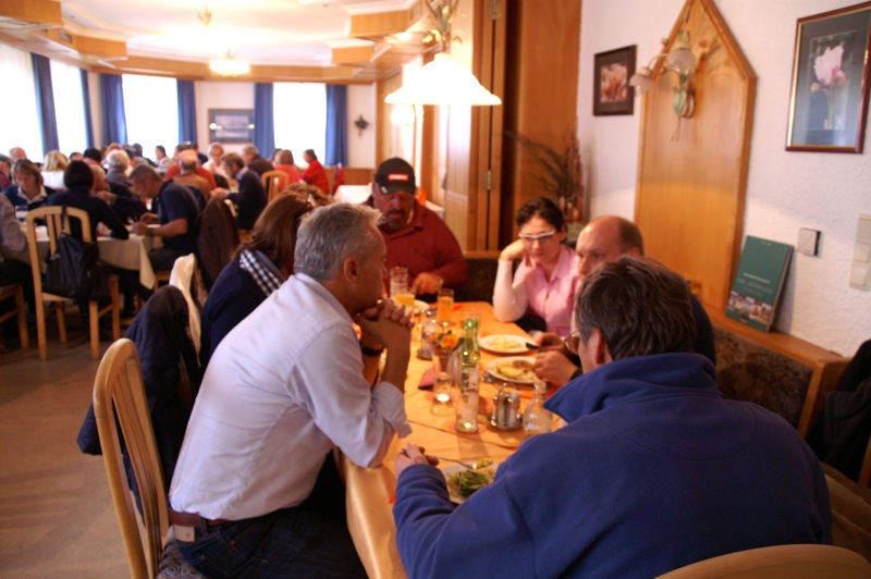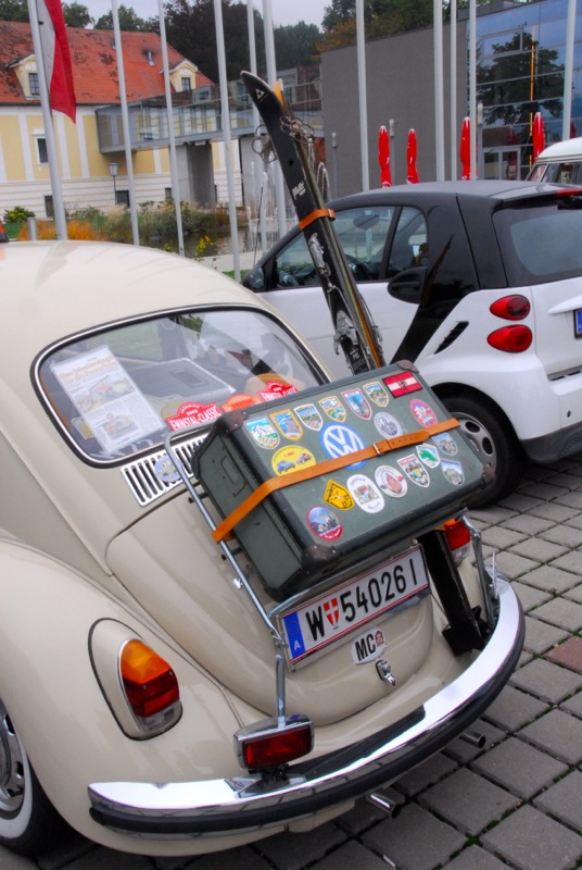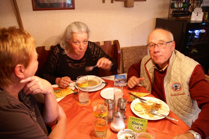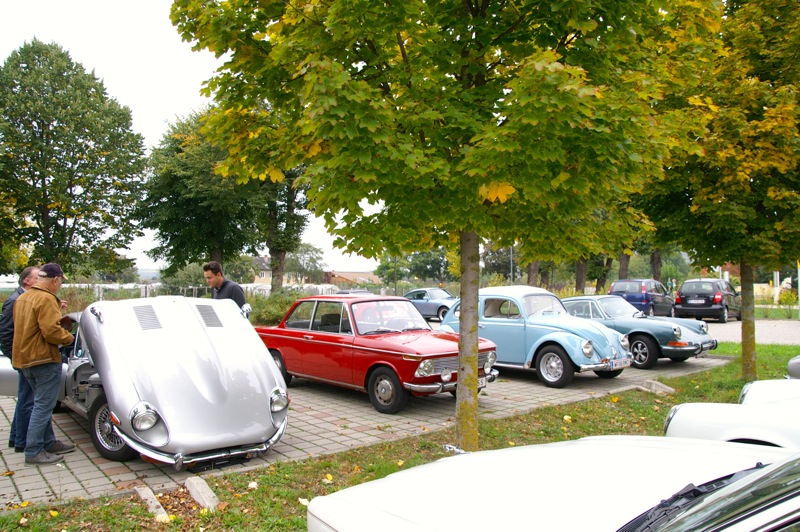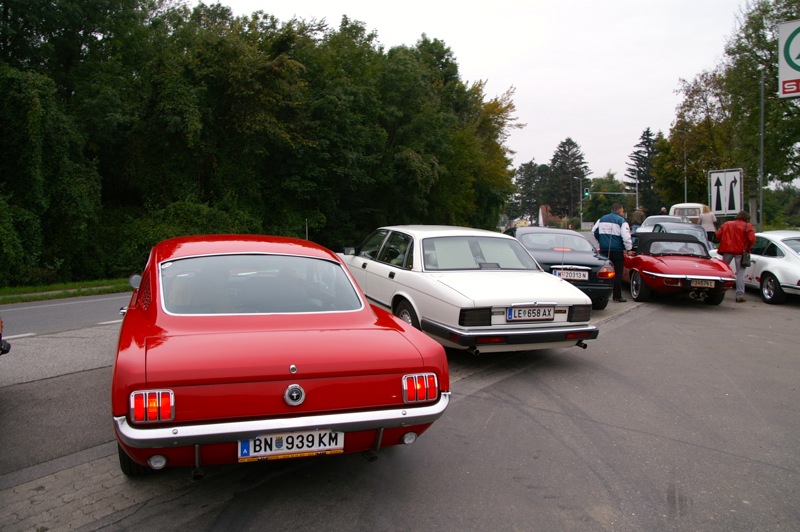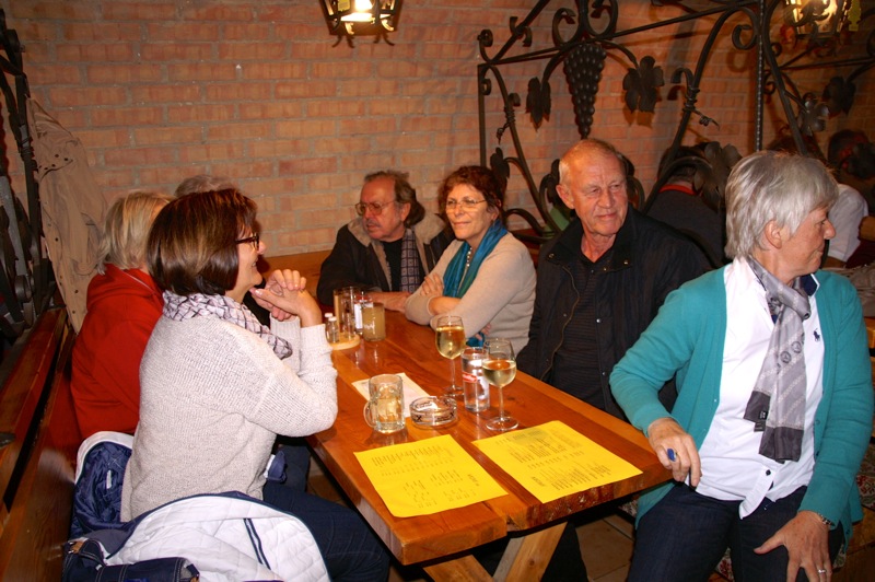 Gelungenes Saisonende an diesem kühlen Samstag, diesmal organisiert von Karin und Harald Rettich. Kurzzeitige Panik überkam Harald, nachdem sich 38 Fahrzeuge angemeldet hatten. Es kam aber so wie immer, kurzfristige Absagen und schließlich starteten wir mit rund 32 Autos. Treffpunkt war in der Kurvenbar in Leobendorf. Überrascht wurden wir von Fam. Rettich mit einem „Jausensackerl“, das jedes Teilnehmerpaar in die Hand gedrückt bekam. Schließlich fuhren wir ja in das Waldviertel und wer weiß, wann wir da was zum Essen bekommen, Nachdem alle pünktlich waren, konnte sich der Konvoi um 9.00 Uhr in Bewegung setzen. Das Loisium wurde aus organisatorischen Gründen links liegen gelassen und so war unsere 1. Pause im Schloss Haindorf bei Langenlois. Nach einer weiteren Stunde Fahrzeit durch die herbstlich Landschaft, ging es Gottseidank zum Mittagessen ins Gasthaus Gamerith, Mottingeramt. Nach einem ausgezeichnetem Mittagmahl heißt es natürlich: auf zur Jause. Eine Stunde verdauen war angesagt und schon waren wir im „Brandlhof“ bei Radlbrunn gelandet. Dort eingetroffen gab es vor dem Kaffee aber noch eine kleine Führung zum Thema Dorferneuerung. Abschluss war dann wie immer, wie kann es anders sein 🙂 bei einem Heurigen in Höbersdorf.