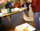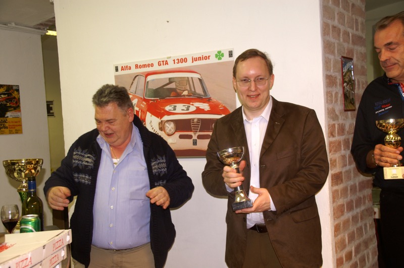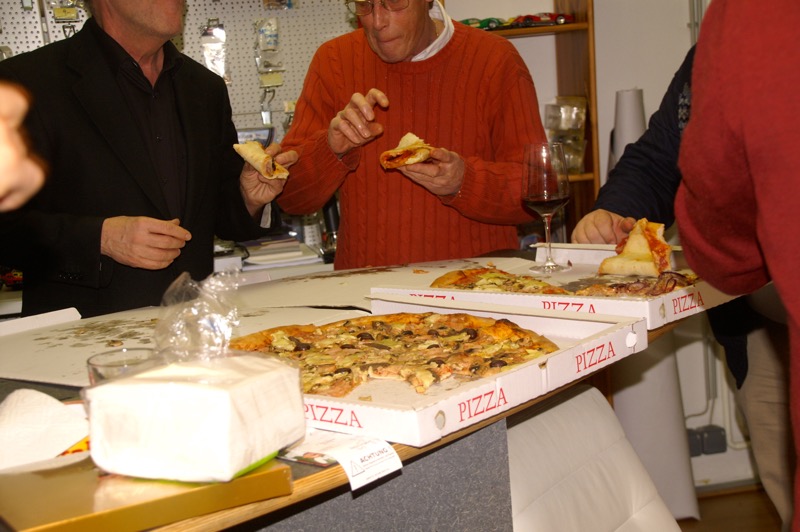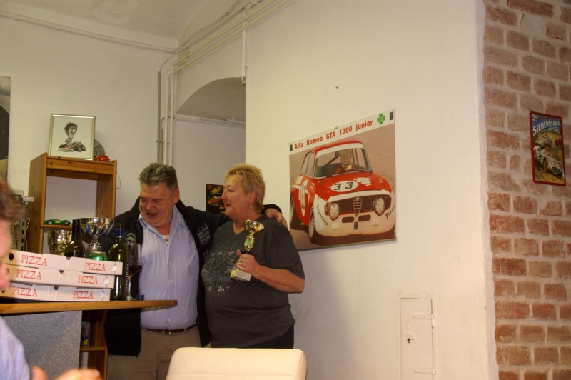 Gestärkt mit drei wagenradgroßen Pizzen (danke an die edlen Spender) ging es auf die Rennbahn. Trotz schmerzender Knieverletzung leitet Gerhard wieder einmal den ganzen Rennablauf bravourös, natürlich wie immer unterstützt durch unseren Herbert Fischer.