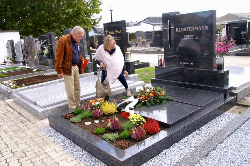 Um 10 Uhr folgten wir dem Führungsauto nach Podersdorf zum Friedhof um den frühen Tod unseres lieben Club-Mitglieds Raimund Klostermann zu gedenken. Viele, fast alle staunten über die eleganten und großen Gräber auf diesem Friedhof. Ich habe noch niemals so viele, eigentlich alle, große Marmor und aufwändig gestylte Grabzierden gesehen.