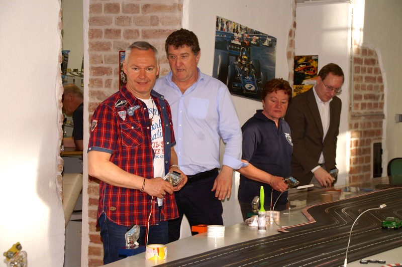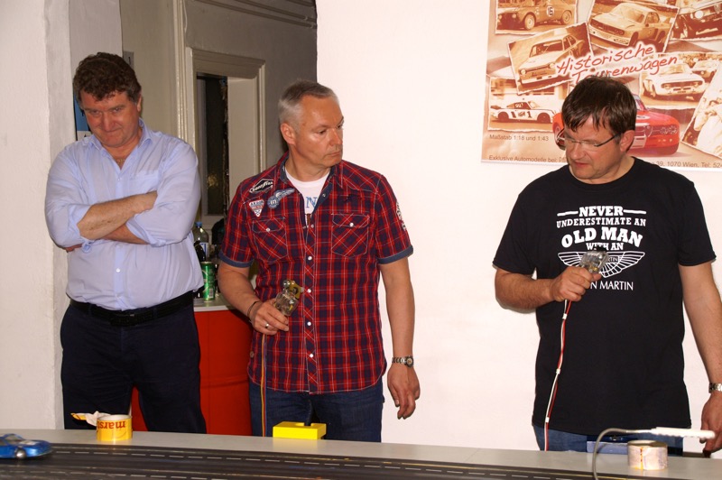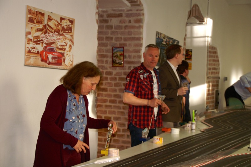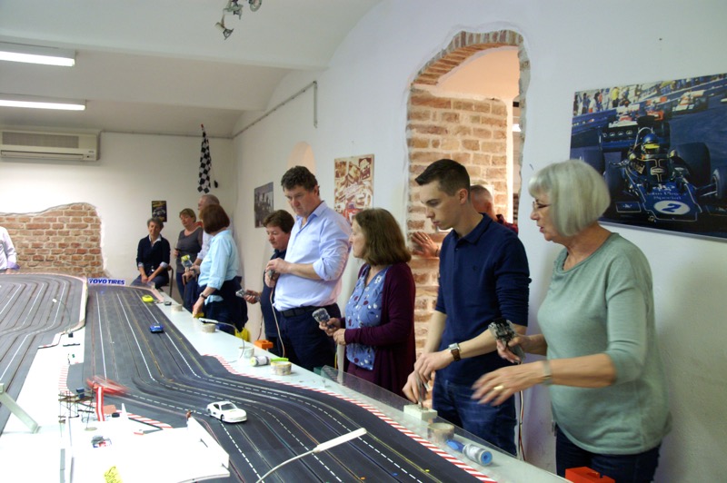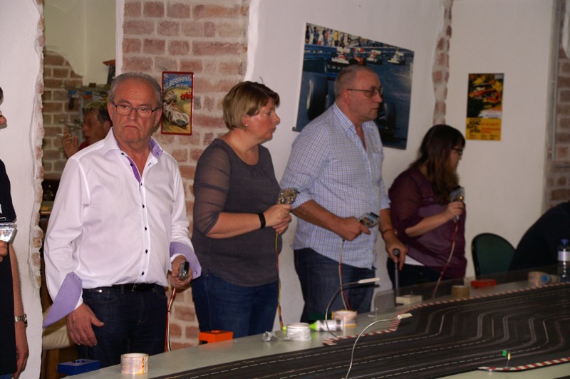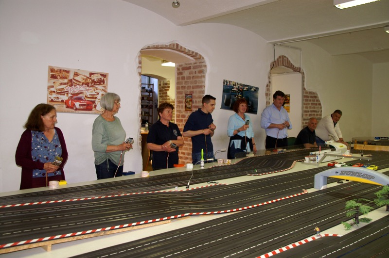13. Start in den Frühling am 13. April 2018. 18 fahrwütige Freunde und Mitglieder des COVC starteten heuer wieder im Flatrace um die Ehre. 18 = eine optimale Anzahl für diesen Sport, denn es gibt insgesamt 6 Bahnen, die jeder einmal befahren muss. Unser „Dreamteam“ – Herbert und Gerhard wieder bestens gelaunt. Nach Stärkung durch Pizza kam es zur Bahneinteilung und schon konnte es losgehen. Heuer in Rekordzeit von rund 1 ½ Stunden, bedingt durch den Wegfall der Pause und die Disziplin der Mitfahrer – denn rausfallen kostet Zeit, standen bereits der Sieger bzw. Siegerin fest. Einzige Panne an diesem Abend: ein Streckenposten beschädigte beim Einstellen des Fahrzeuges das Dach so schwer, dass es durch den Chefmechaniker Herbert kurzerhand mit Leukoplast wieder befestigt werden musste 🙂