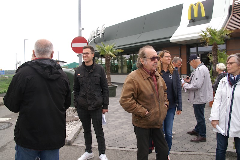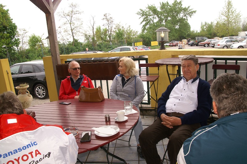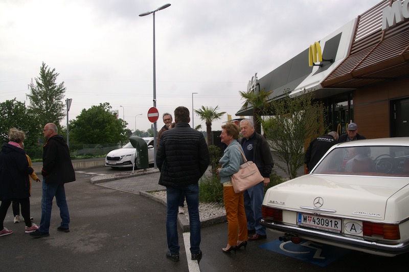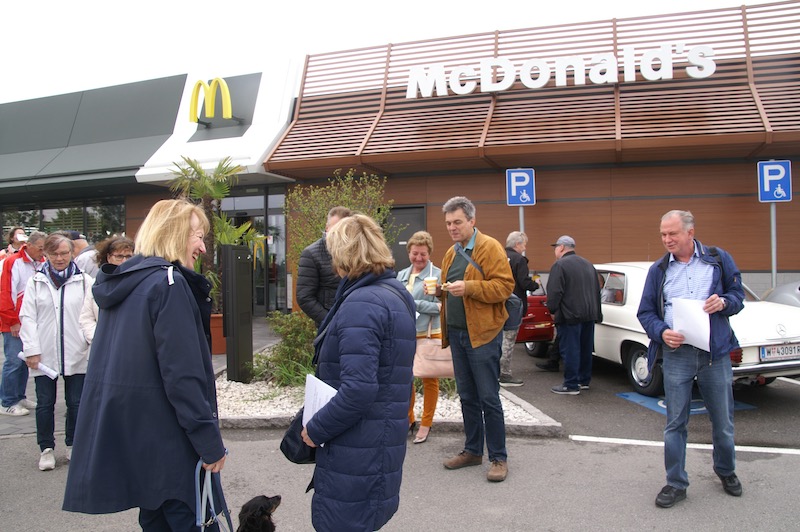 Es hat Barbara und mir gut gefallen, dass unser Treffpunkt zur Saisoneröffnung erst später als in früheren Jahren angesetzt war. So konnten wir mit unserer Corvette C2 Stingray gemütlich, nur über Landstraßen, ohne Vignette, von Breitenfurt nach Schwechat die ersten Kilometer im heurigen Jahr fahren. Im Zuge von Ottos Begrüßungsrede hat Heinz Ries rührend erwähnt, dass seine liebe Frau Grete schon im Herbst, vergangenes Jahr, vor ihrem unerwarteten Tod, die Strecke und die Stationen mit ihm ausgewählt hat. Um 10:00 sind dann an die 30 Oldtimer, eine schöne, bunt gemischte Truppe, vom Mc Donalds losgefahren.
