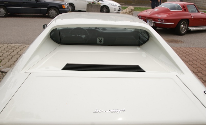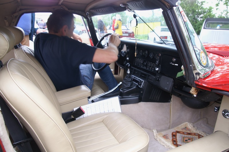 Mit einer taktischen Meisterleistung habe ich mich hinter dem eindrucksvollen, weißen Ferrari Dino von Herbert Berger positioniert. Die beiden Sportwägen konnten aber nie aufdrehen, wir waren weit vorne. Wahrscheinlich war es für mich mehr Stress das Tempo zu zügeln, als für die hinteren allfällige Lücken zu schließen. In der Gemütlichkeit ist mir dafür nicht entgangen, dass Herbert an seiner Heckscheibe standesgemäß ein Playboyhäschen picken hat.