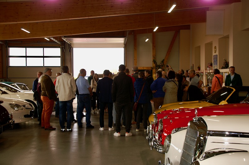 Als Psychiater sage ich „wie haben sich doch die Zeiten für unsere Kinder und Enkelkinder geändert …“. Herr Naglreiter war letztlich doch zur richtigen Zeit am richtigen Ort, hat als „Bäck“ Feuer gefangen und offensichtlich seine Chancen nützen können. Schön, dass er das gleiche Hobby wie unsere COVC-Mitglieder hat. Die Halle mit einem Horch aus den 1930er Jahren, einem Cadillac aus den 40ern, Mercedes 220 und Jaguar XK aus den 50ern, dem seltenen Borgward und dem besonders robusten, zeitlosen Mercedes 240 haben wir genossen. Zum Schluss sind wir noch in einer Filiale zusammengesessen und haben den wirklich schönen, kurzweiligen Tag mit einem pikanten oder süßen Imbiss ausklingen lassen.