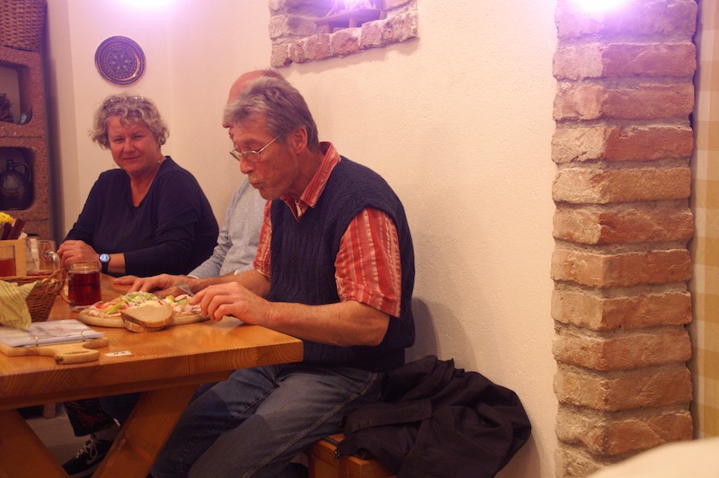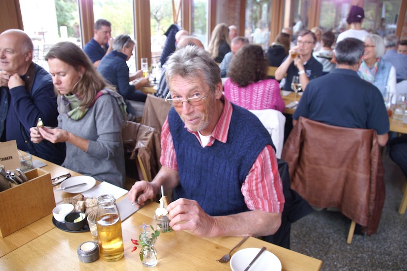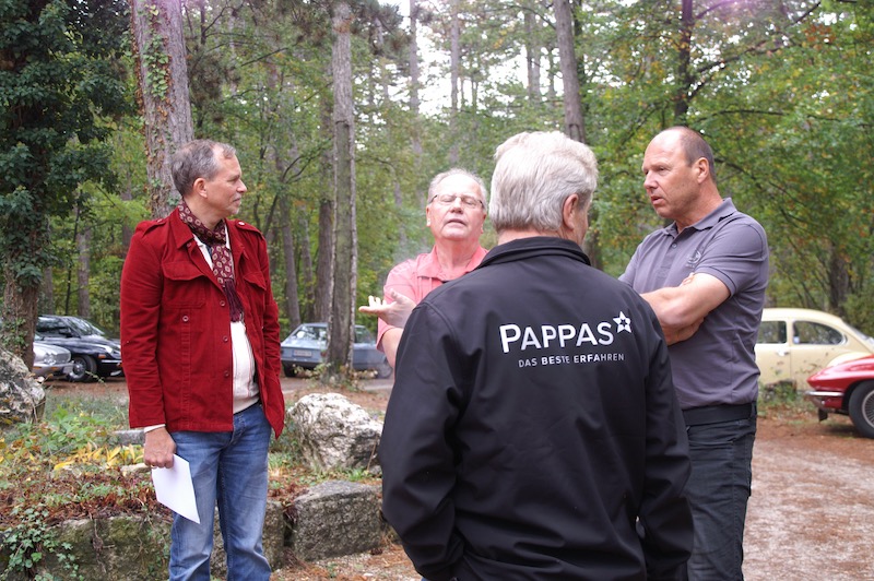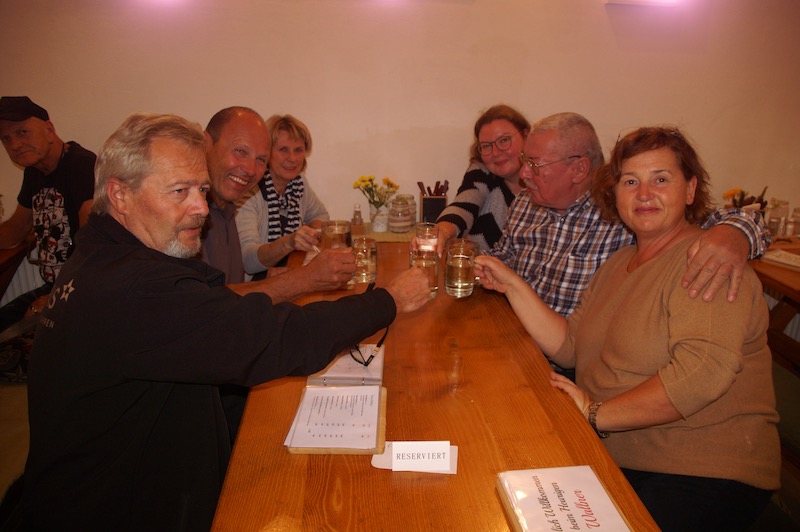 Nach kurzer Begrüßung durch Otto und Pauline ging es um ca. 8.45 Uhr los. Über die Hinterbrühl, Heiligenkreuz und Berndorf erreichten wir unseren erste Stopp die Waldhütte am Guglzipf. Idyllischer Platz mitten in einem Wald und gleich daneben ein Aussichtsturm, der von einem neugierigen Wolfgang kurz vor Abfahrt auch noch bestiegen wurde.