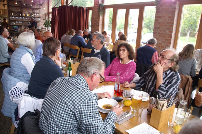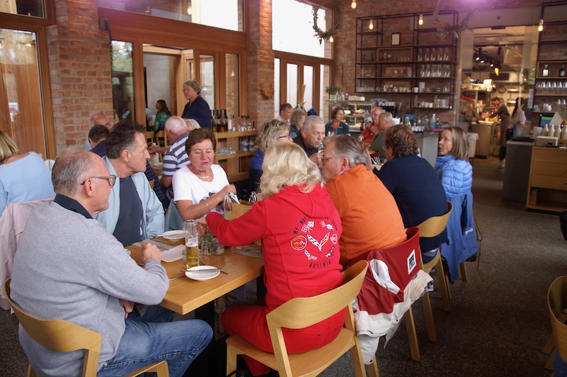 Nach der Besichtigung verabschiedeten sich rund die Hälfte der Teilnehmer und der Rest trat die Reise zu unserer letzten Station, an diesem Tag, an. Die letzte Etappe führte uns über Leithaprodersdorf, Mannersdorf, Sarasdorf nach Arbesthal zum Heurigen Wallner. Dort konnten wir bei einer guten Bretteljause und einem Glas Wein den Tag schön ausklingen lassen. Liebe Pauline und Gerhard, alles bestens organisiert und selbst das Wetter war auf Eurer Seite. Herzlichen Dank für die tollen Ideen und für den gelungenen Saisonabschluss 2022.