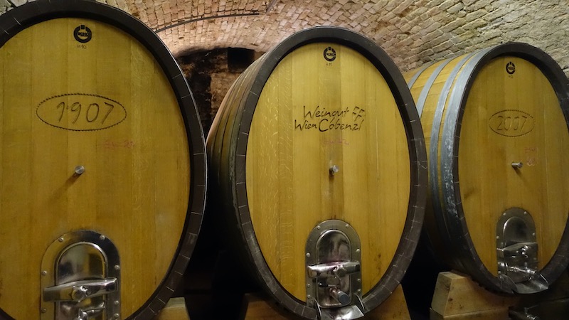 Das Weingut produziert/vermarktet alleine „7 Sorten“ Veltliner, wobei aber der „Gemischte Satz“ den größten Teil des Absatzes ausmacht. Das Weingut ist ein Betrieb der Stadt Wien, eingegliedert in die MA49. Trotzdem – oder evtl. gerade deswegen – wird in der Saison 1-2x wöchentlich „unangekündigt“ kontrolliert, ob wirklich das drinnen ist, was draußen angeschrieben steht. Insbesonders auch durch die kompetente, sympathische Art unseres Guides „Josef“ war die Führung sehr interessant gestaltet und hat uns sehr gut gefallen. Daran anschließend ging es zu einem Imbiss in das Cobenzl Rondell. Das ist ein Neubau, mit leider zu nüchternem Ambiente. „Das“ wird aber mehr als wett gemacht, durch den herrlichen Blick auf die Stadt Wien.