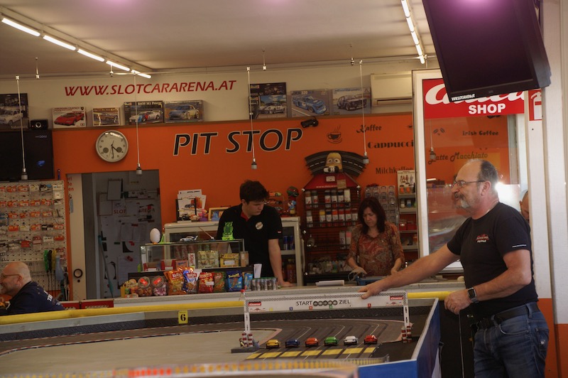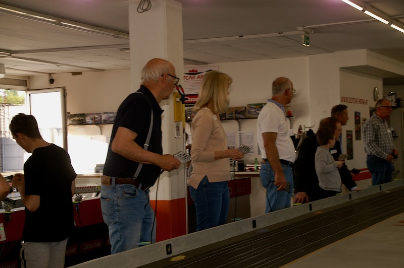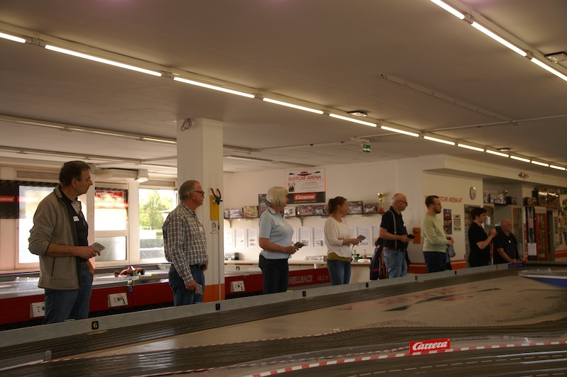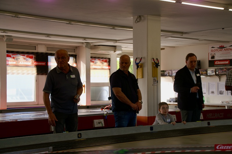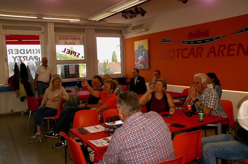 Angeregt durch Wolfgang, fand heuer seit Jahren wieder einmal eine Slotcar-Veranstaltung, statt. So trafen sich rund 25 Freunde und Mitglieder des COVC sowie des Lions Club Wien Donau, in der Slotcar Arena im 10. Bezirk. Um mit den kleinen Autos ihre Runden zu drehen. In der ersten Stunde war Training angesagt und da war es jedem Teilnehmer möglich, auf jeder der 6 Bahnen seine Runden zu drehen. Nachdem dies passiert ist, wurden aufgrund der großen Teilnehmeranzahl Teams zu jeweils 2 Personen zusammengelost. Und danach hat der Kampf begonnen. Runde um Runde wurde gekämpft, die Streckenposten zu schnelleren Aktionen angeregt und am Ende kam es zu einem Ergebnis, welches wir bereits aus den vergangenen Veranstaltungen kennen: