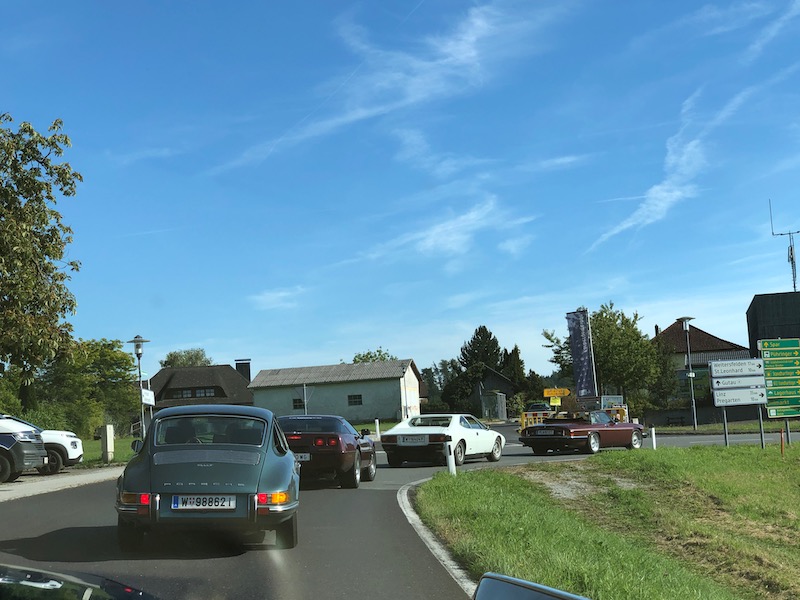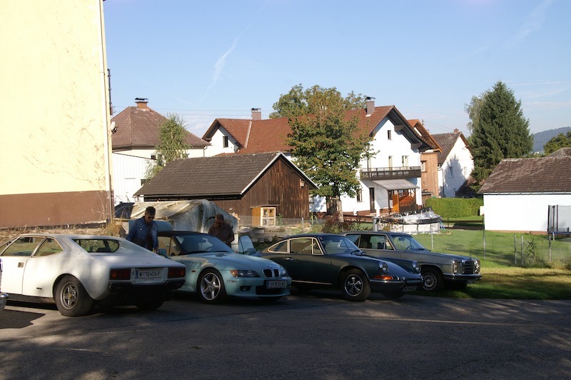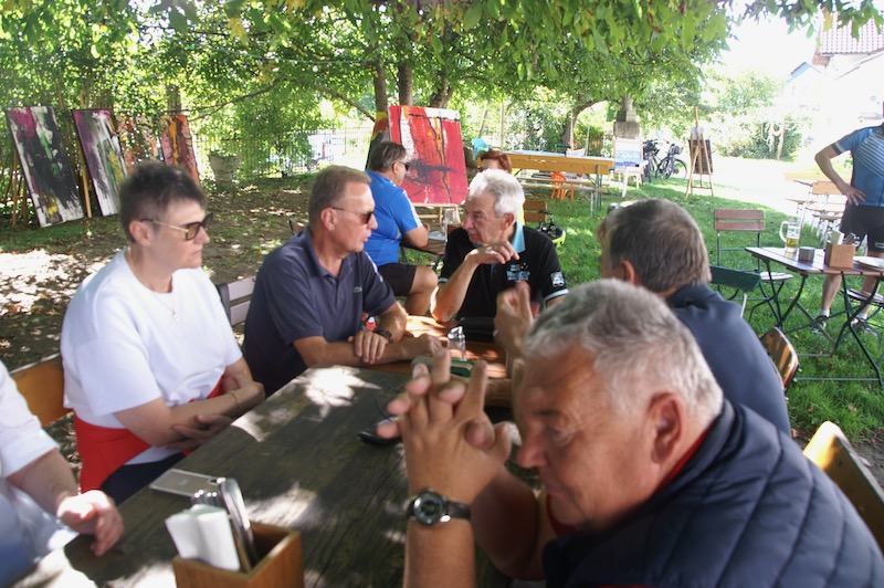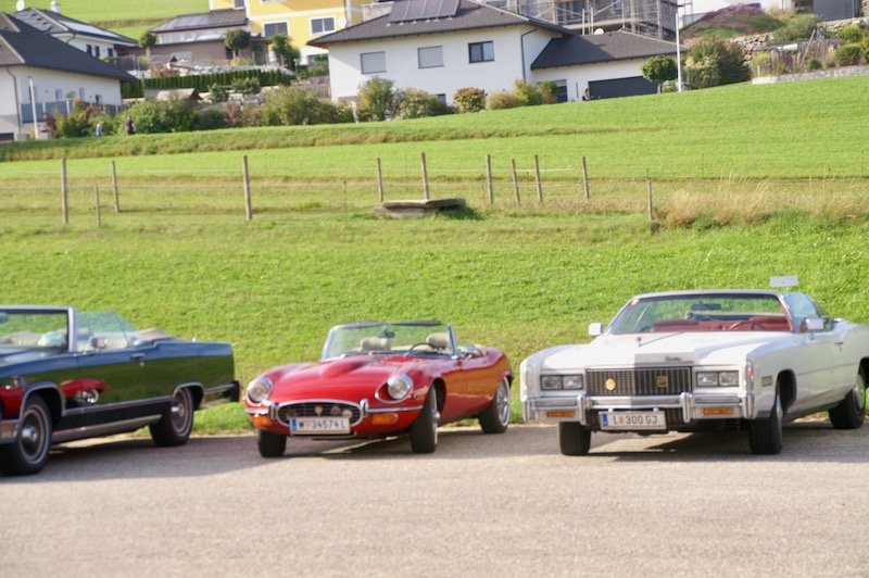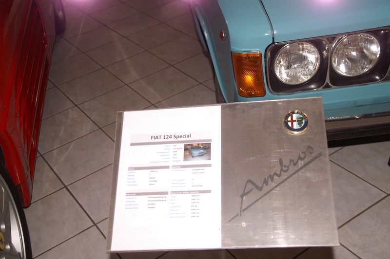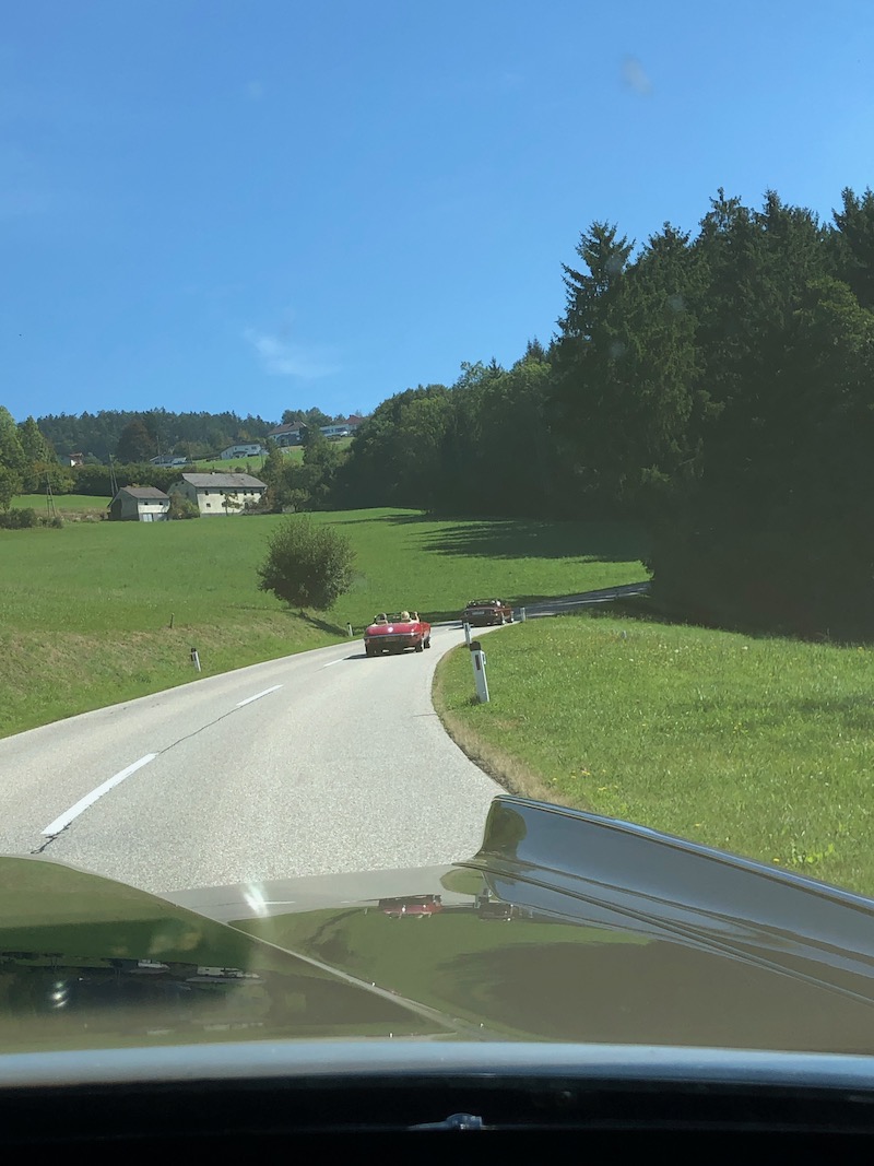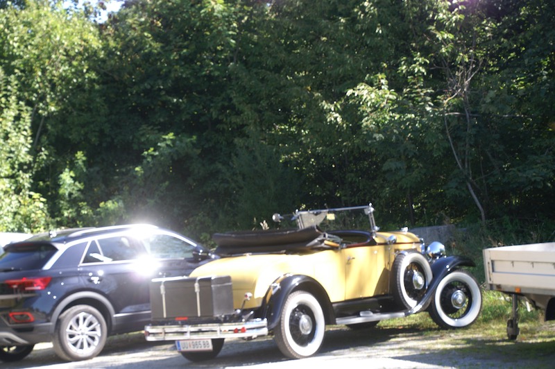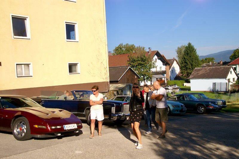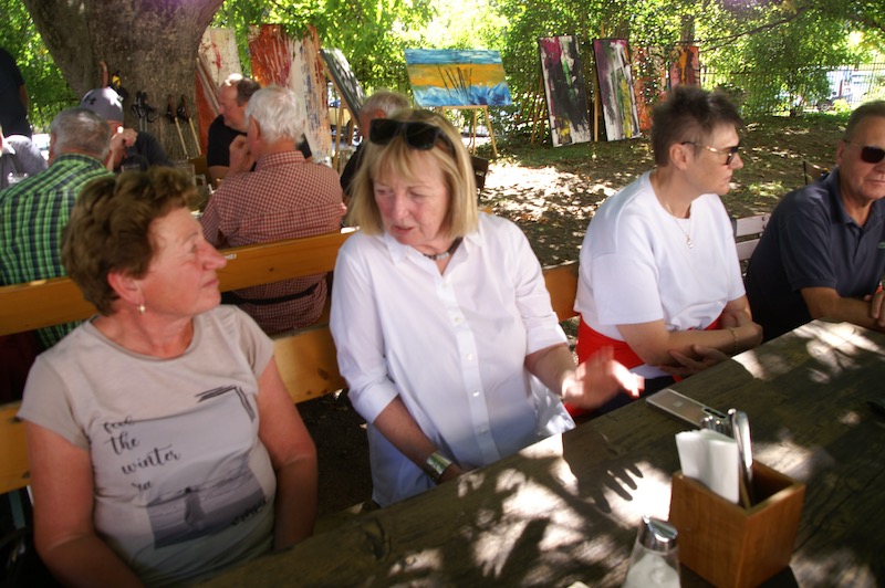 Nach diesen Eindrücke und kurzer Stärkung ging es weiter zum Mittagessen in die Schlossbrauerei Weinberg in Kefermarkt. Wo wir wieder im schönsten Sonnenschein das Mittagessen genießen konnten. So gestärkt ging es weiter zur letzten Station dieses Wochenendes nämlich in das Automobilmuseum Ambros in Pabneukirchen. Lauter italienische Fabrikate – Autos – Autos – Autos – wohin das Auge reicht. Noch nie habe ich auf einen Platz so viele Fahrzeuge, alt und jung, gesehen. Und von einem Mitfahrer hörte ich sogar – hoffentlich ist das nicht ansteckend. Nach dieser beeindruckenden Sammlung verabschiedeten sich 4 Teilnehmer um bereits schon jetzt die Heimfahrt anzutreten. Zu viert ging es dann noch entlang der Donau bis nach Weitenegg in das Wirtshaus Gruber, um das Wochenende nochmals zu beplaudern.